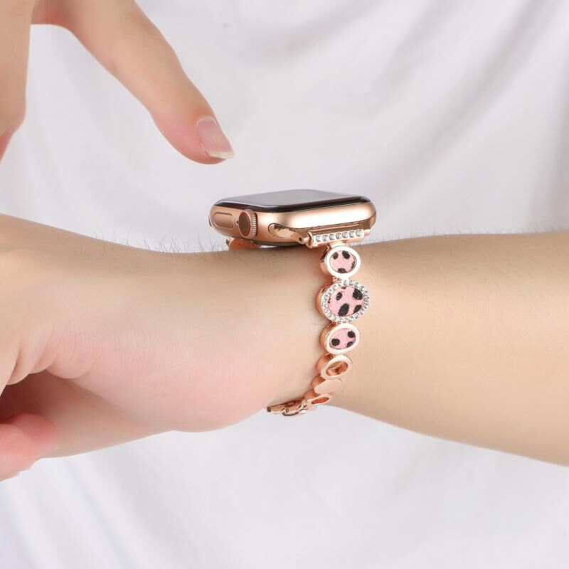 Για Apple Watch Ultra 49mm Λεοπάρδαλη με Ρητίνες, Μεταλλική Αλυσίδα για Ρολόι (Ροζ χρυσός)
