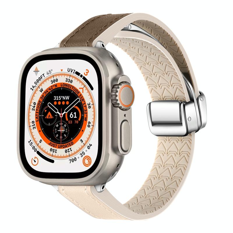 Για Apple Watch Ultra 49mm Μαγνητικό Δερμάτινο Λουρί με Σιλικόνη (Κόκκινο Ρόδι)