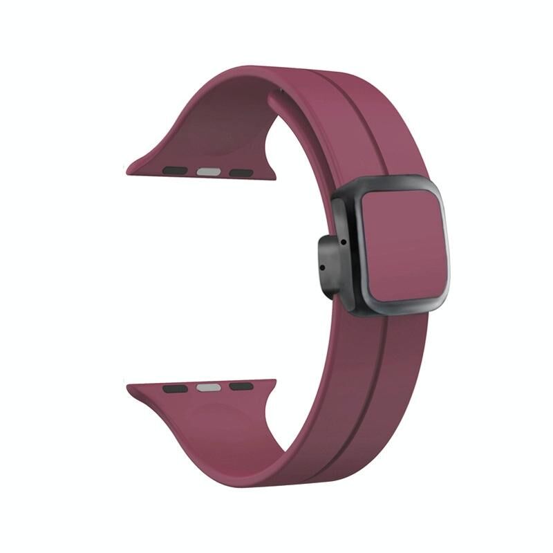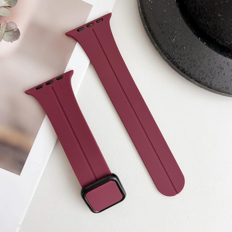 For Apple Watch Ultra 49mm Magnetic Square Buckle Silicone Watch Band(Wine Red)