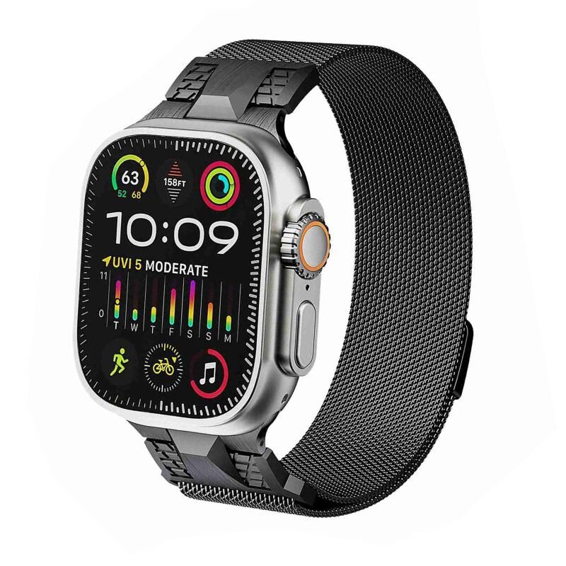 For Apple Watch Ultra 49mm Mecha Style Milanese Metal Watch Band(Titanium Grey)