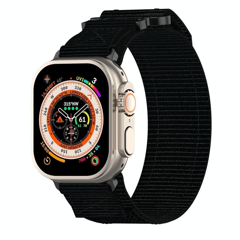 For Apple Watch Ultra 49mm Nylon Hook And Loop Fastener Watch Band(Black)