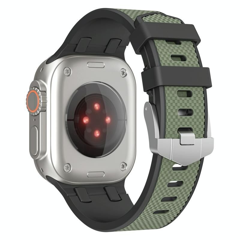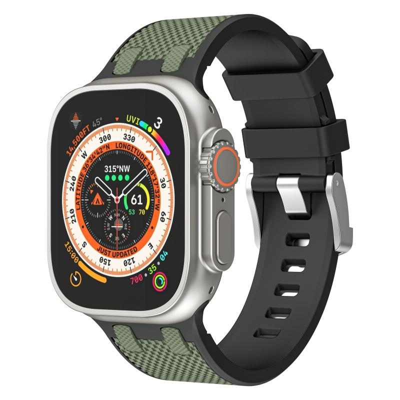 For Apple Watch Ultra 49mm Oak Silicone Watch Band(Black Army Green)