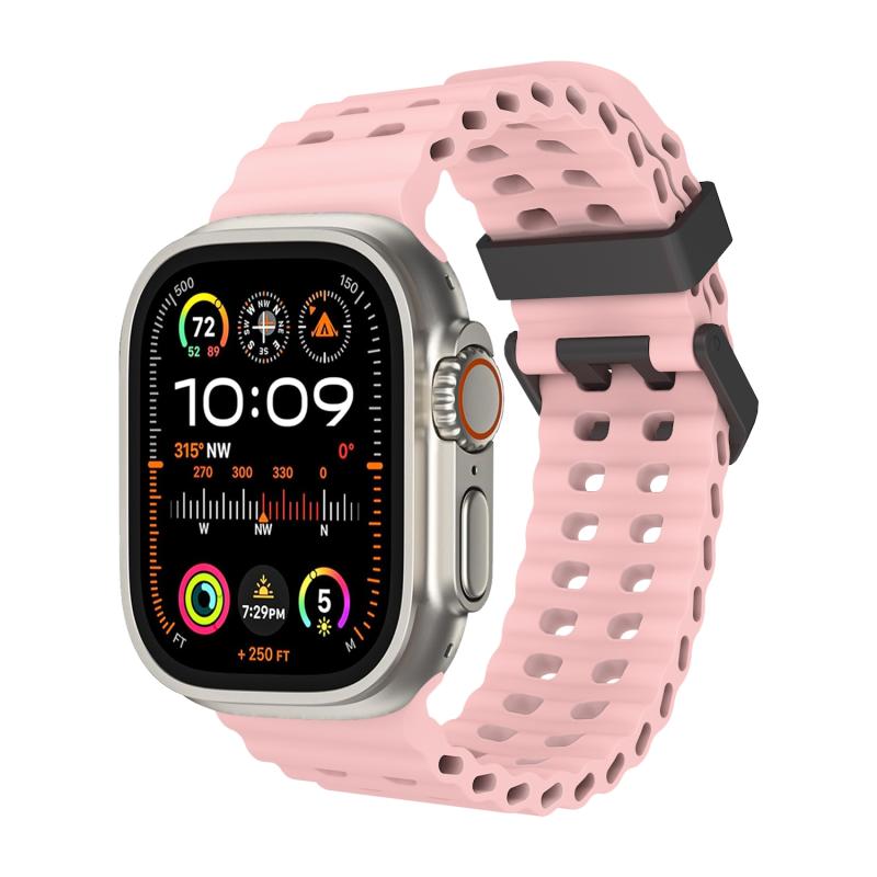 Για Apple Watch Ultra 49mm Ocean Διπλή Σειρά Τρυπών Σιλικόνης Λουράκι Ρολογιού (Vintage Rose)