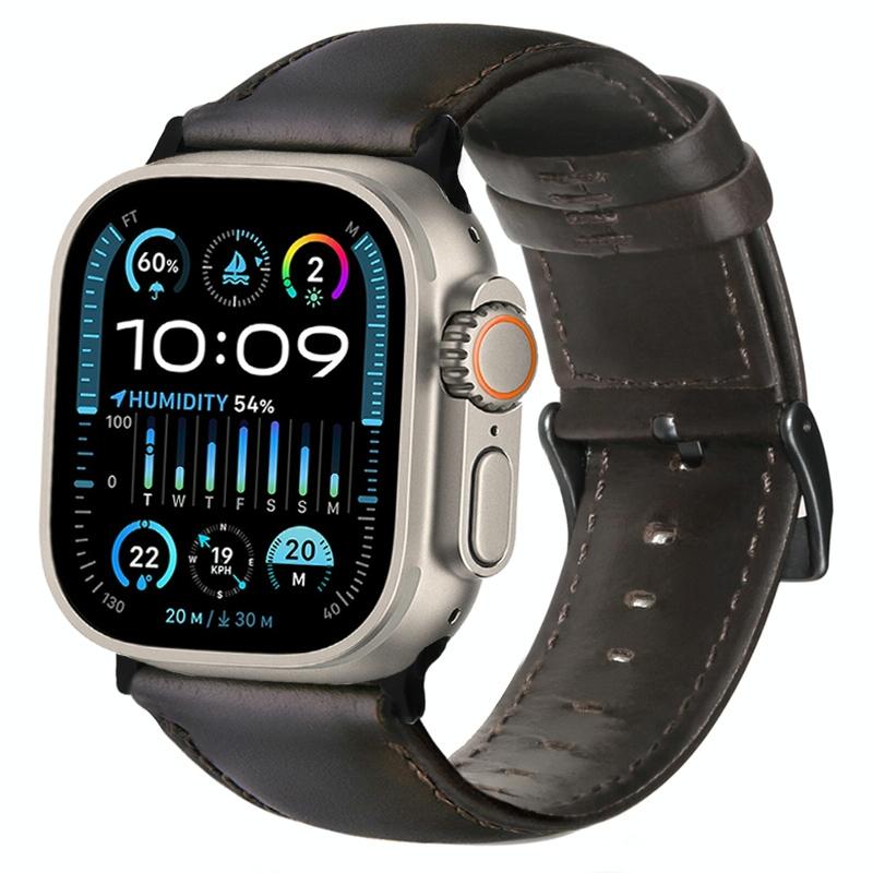 Για Apple Watch Ultra 49mm Λουρί Ρολογιού από Γνήσιο Δέρμα με Φινίρισμα Λαδιού και Κεριού (Μαύρο)