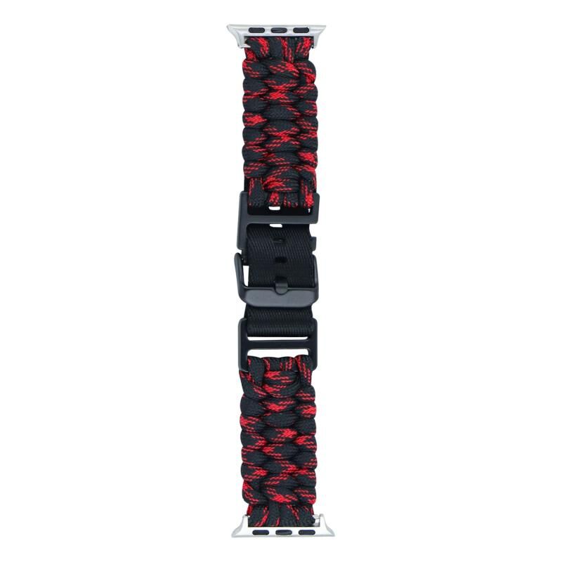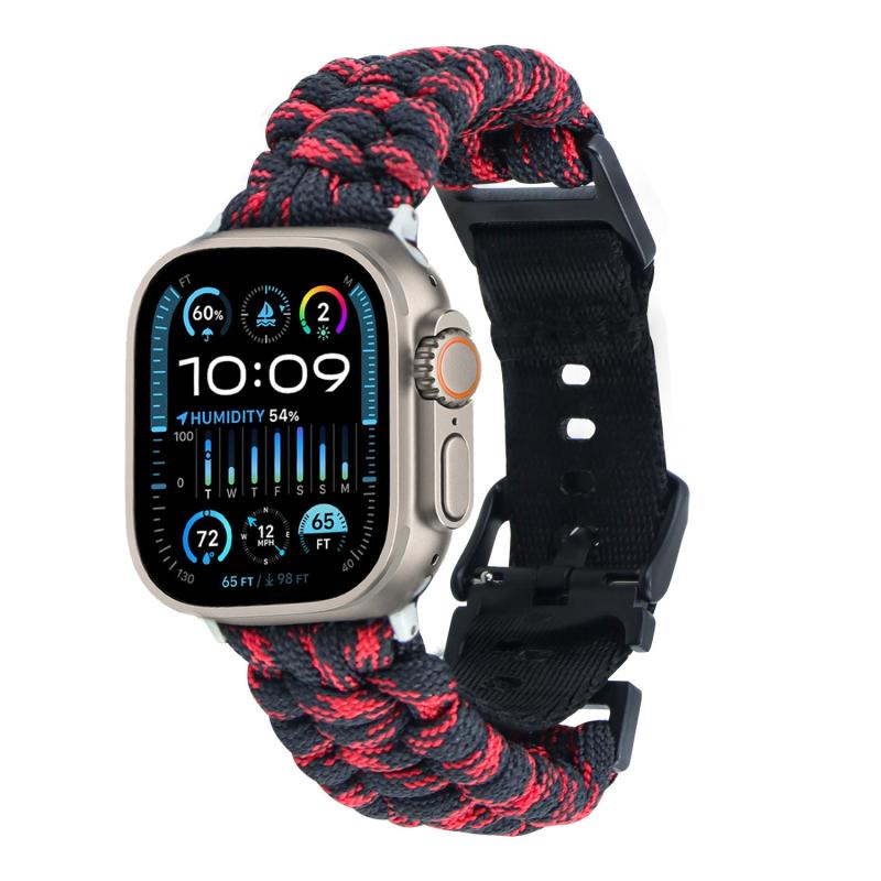 Για Apple Watch Ultra 49mm Ιμάντας Ρολογιού με Αγκράφα από Πλεχτό Παρακορδ (Μαύρο Κόκκινο)