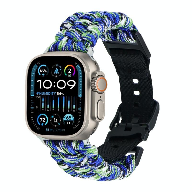 Για Apple Watch Ultra 49mm Ιμάντας Ρολογιού με Αγκράφα από Πλεχτό Παρακορδ (Μπλε πράσινο)