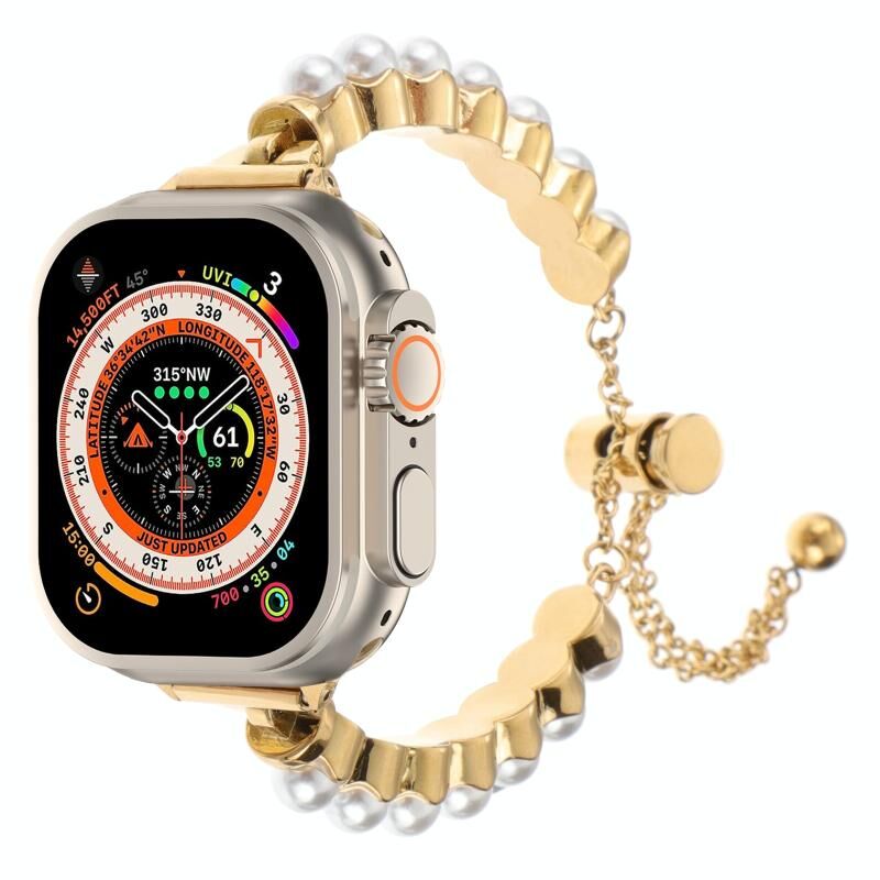 For Apple Watch Ultra 49mm Pearl Bracelet Metal Watch Band(Gold)