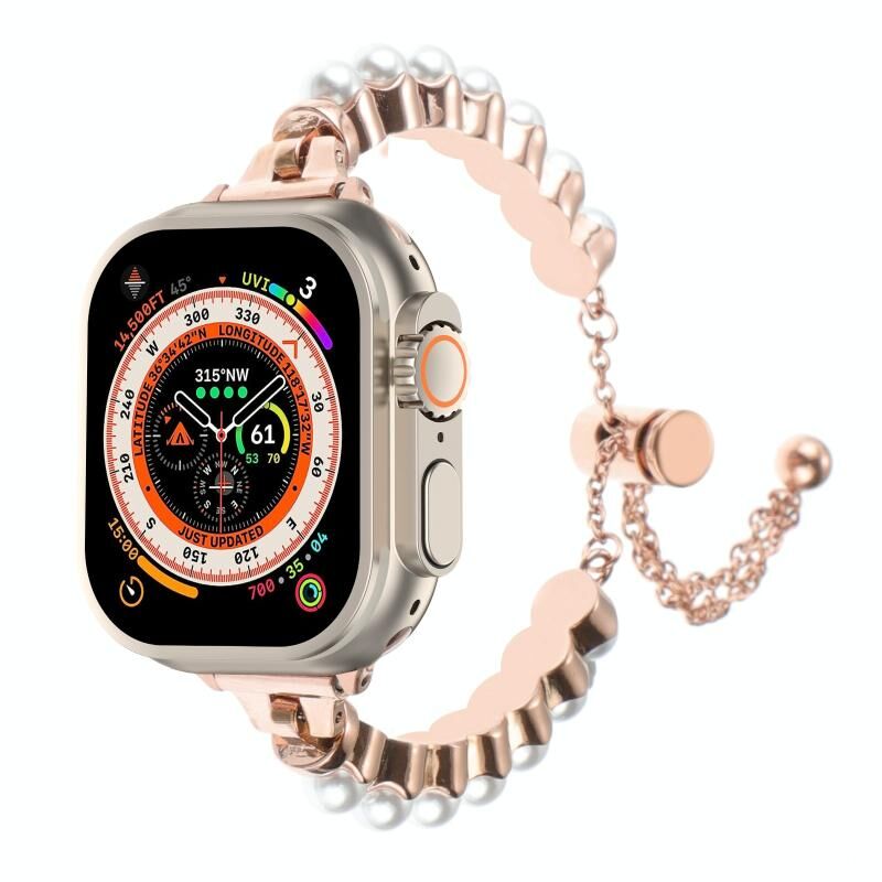 For Apple Watch Ultra 49mm Pearl Bracelet Metal Watch Band(Rose Gold)