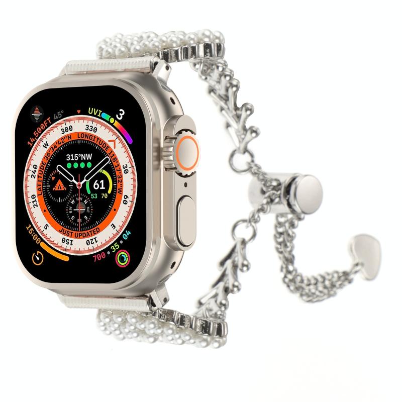 Για Apple Watch Ultra 49mm Πέρλα Στρογγυλή Αλυσίδα από Κράμα Ψευδαργύρου Μεταλλικό Λουράκι Ρολογιού (Χρυσό)