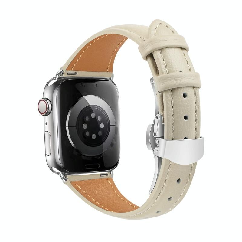 Για Apple Watch Ultra 49mm Απλό Δερμάτινο Λουράκι με Αγκράφα Πεταλούδας (Μπεζ+Ασημί)