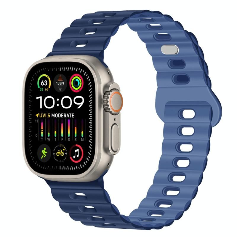 Για Apple Watch Ultra 49mm Αντίστροφος Αγκώνας Αναπνεύσιμος Ιμάντας Σιλικόνης (Σκούρο Ανοιχτό Ναυτικό Μπλε)