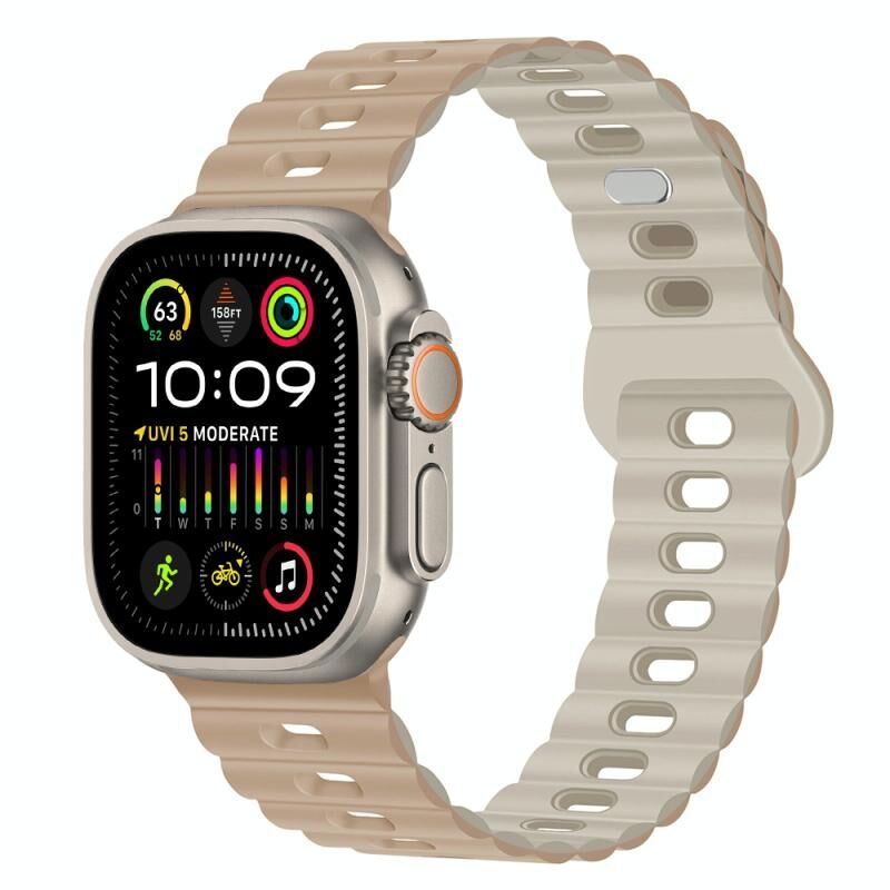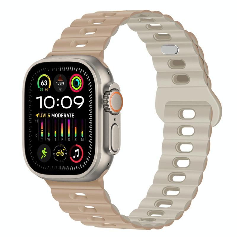Για Apple Watch Ultra 49mm Αντίστροφος Αγκώνας Αναπνεύσιμος Ιμάντας Σιλικόνης (Καφέ Σέλας)