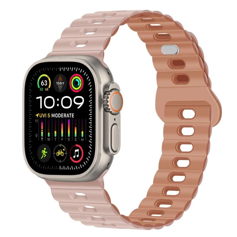 Για Apple Watch Ultra 49mm Αντίστροφος Αγκώνας Αναπνεύσιμος Ιμάντας Σιλικόνης (Καφέ Σέλας)