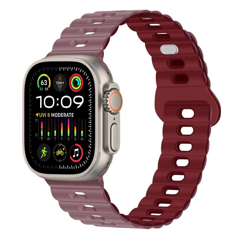 Για Apple Watch Ultra 49mm Αντίστροφος Αγκώνας Αναπνεύσιμος Ιμάντας Σιλικόνης (Καφέ Σέλας)