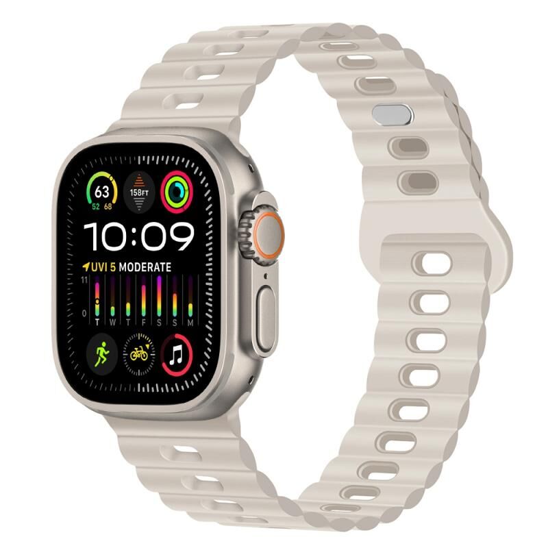 Για Apple Watch Ultra 49mm Αντίστροφη Αγκράφα Αναπνεύσιμος Ιμάντας Σιλικόνης (Starlight)