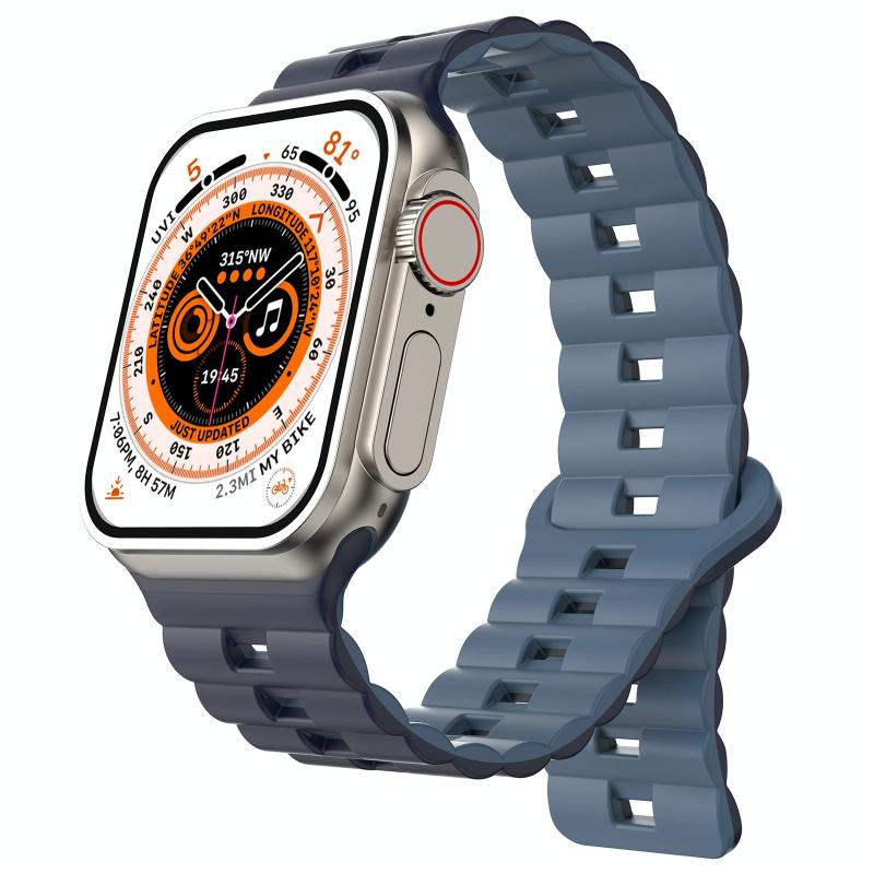 Για Apple Watch Ultra 49mm Αντίστροφη Αγκράφα Διχρωμικό Μαγνητικό Λουράκι Σιλικόνης (Σκούρο μπλε + Ανοιχτό μπλε)