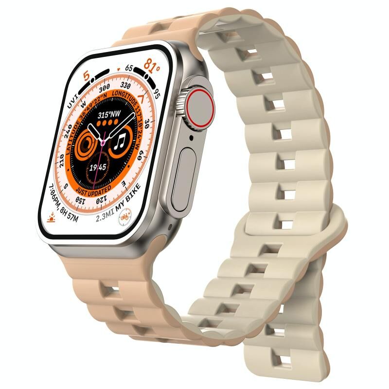 Για Apple Watch Ultra 49mm Αντίστροφη Αγκράφα Διχρωμικό Μαγνητικό Λουράκι Σιλικόνης (Γκρι+Πορτοκαλί)