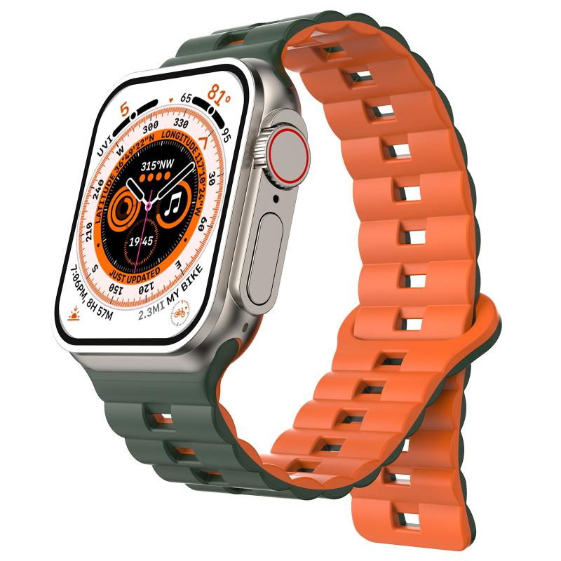 Για Apple Watch Ultra 49mm Αντίστροφη Αγκράφα Διχρωμικό Μαγνητικό Λουράκι Σιλικόνης (Γκρι+Πορτοκαλί)