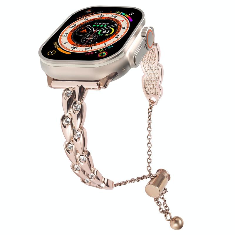 For Apple Watch Ultra 49mm Rhinestone Peacock Metal Bracelet Watch Band(Rose Gold)