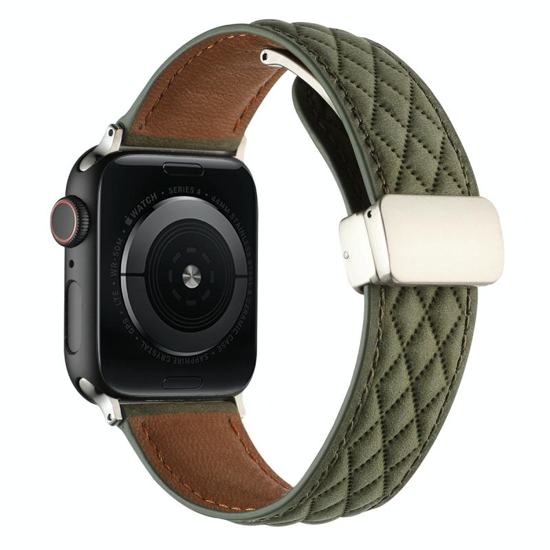 Για Apple Watch Ultra 49mm Μαγνητικό Δέσιμο Δερμάτινο Λουράκι Ώρας με Ρομβικό Σχέδιο (Μαύρο)