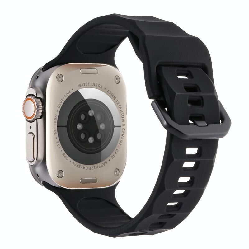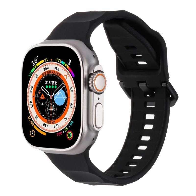 For Apple Watch Ultra 49mm Ripple Silicone Sports Watch Band(Black)