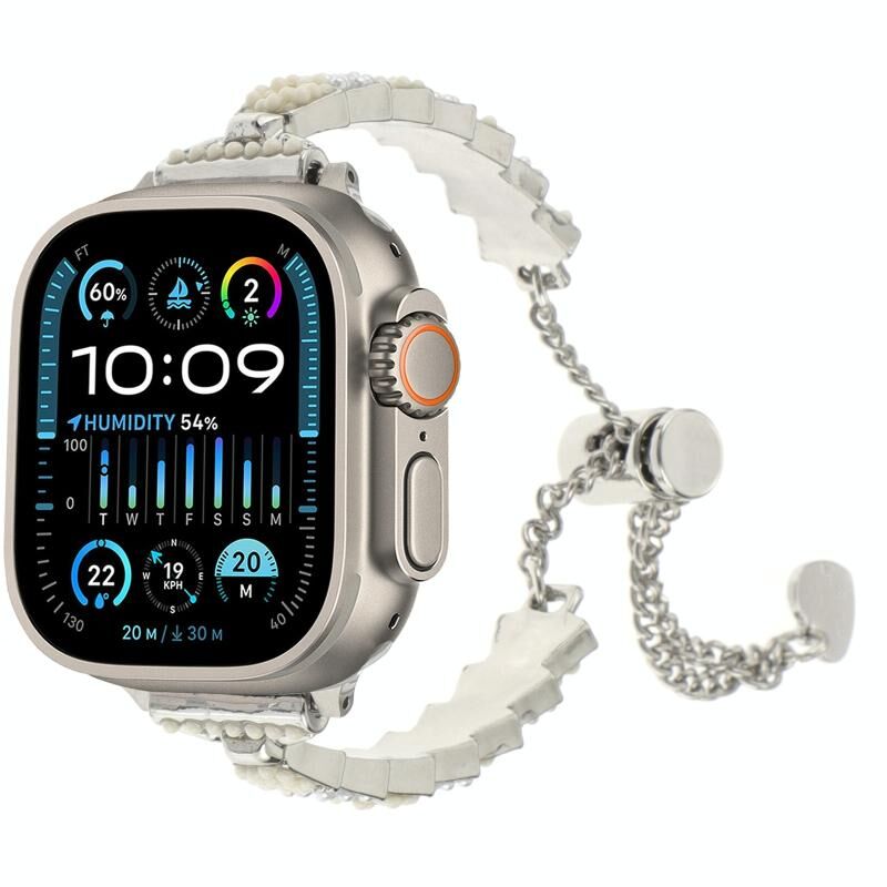 Για Apple Watch Ultra 49mm Κέλυφος Μαργαριταρένια Αλυσίδα Βραχιόλι Μεταλλικό Λουράκι Ρολογιού (Μαύρο Λευκό)