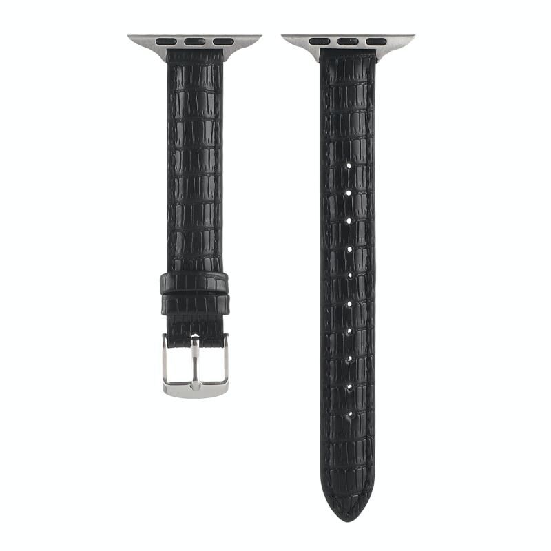 Για Apple Watch Ultra 49mm Λεπτό Δερμάτινο Λουρί Κροκόδειλου (Μαύρο)