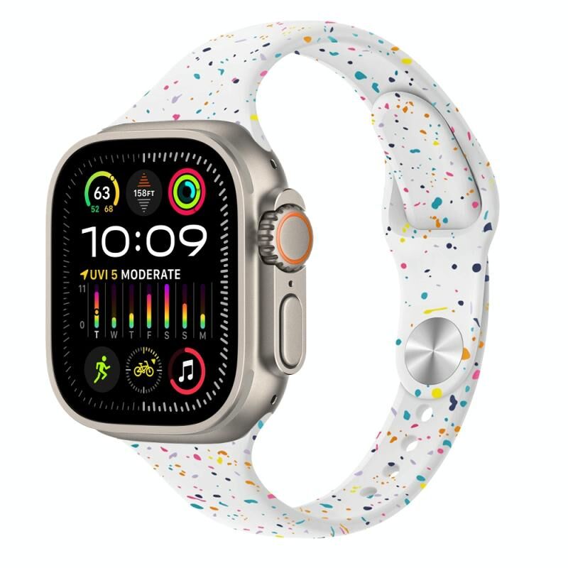 Για Apple Watch Ultra 49mm Λεπτό Στυλ Πολύχρωμες Τελείες Σιλικόνης Λουράκι Ρολογιού (Λευκό)