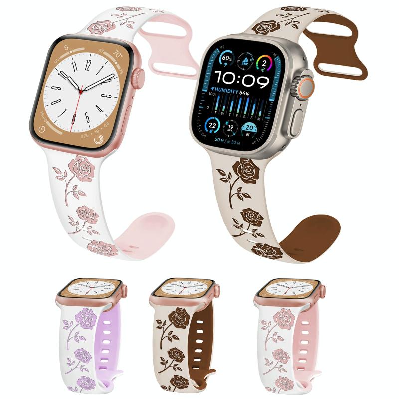 Για Apple Watch Ultra 49mm Διχρωμη Ροζ Χαραγμένη Σιλικόνη Λουράκι Ρολογιού (ρόδινο)