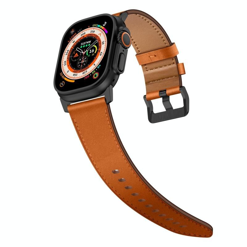 Για Apple Watch Ultra 49mm Λουρί ρολογιού από δέρμα κορυφαίας ποιότητας Wilderness (Σύνδεσμος Μαύρος Μαύρο)