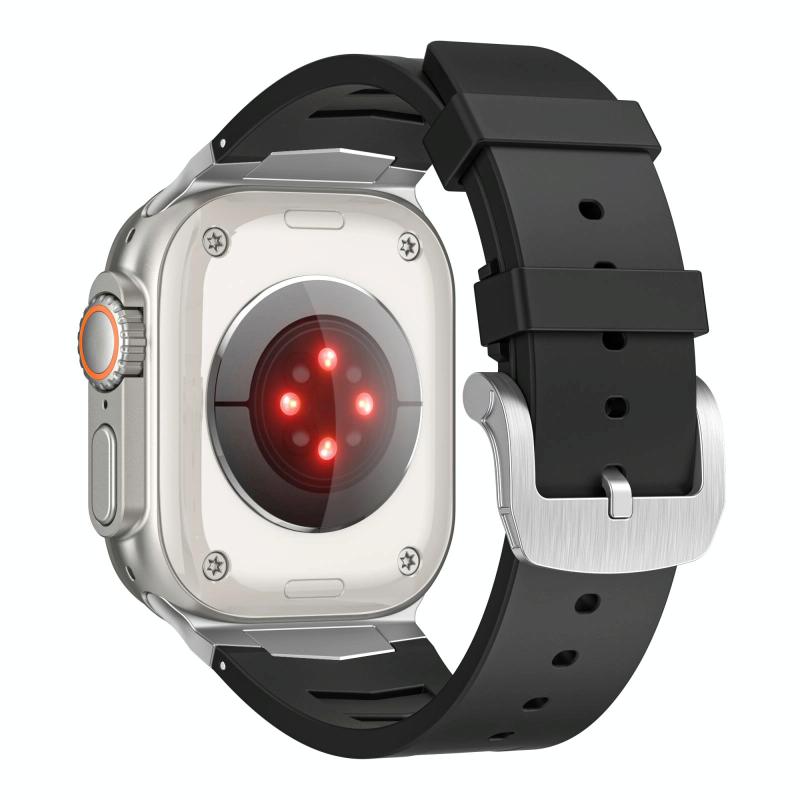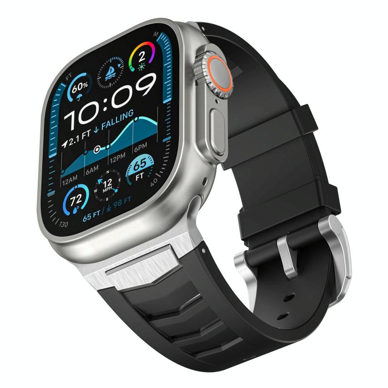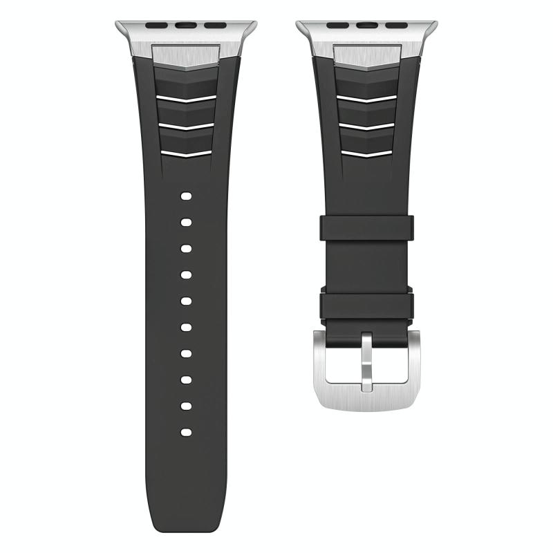 For Apple Watch Ultra / Ultra 2 49mm Stainless Steel Buckle Fluororubber Watch Band(Black Silver)