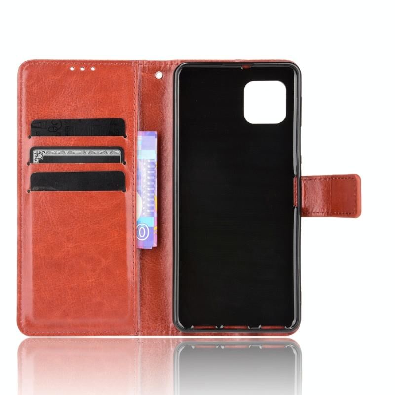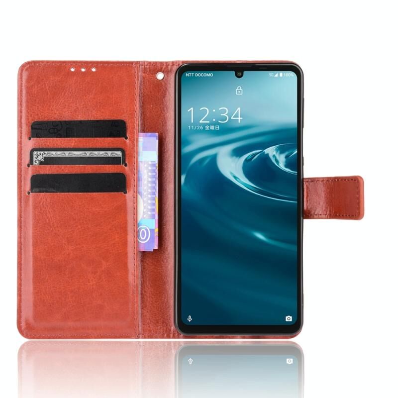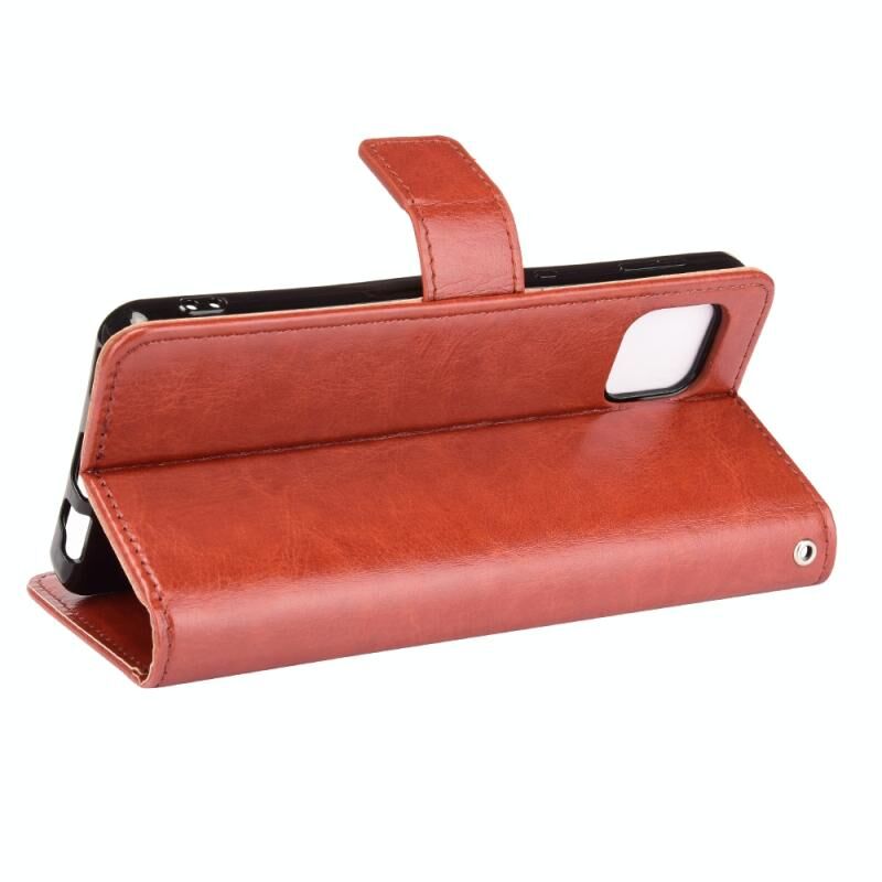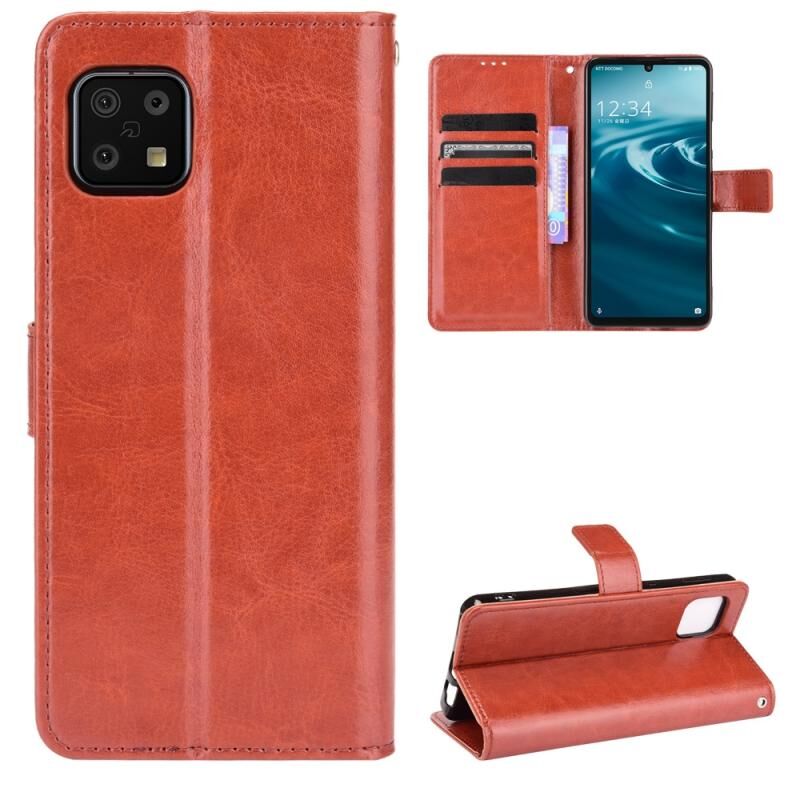 Για Aquos Sense6 Crazy Horse Υφή οριζόντια Flip δερμάτινη θήκη με θήκη & υποδοχές καρτών & κορδόνι (καφέ)