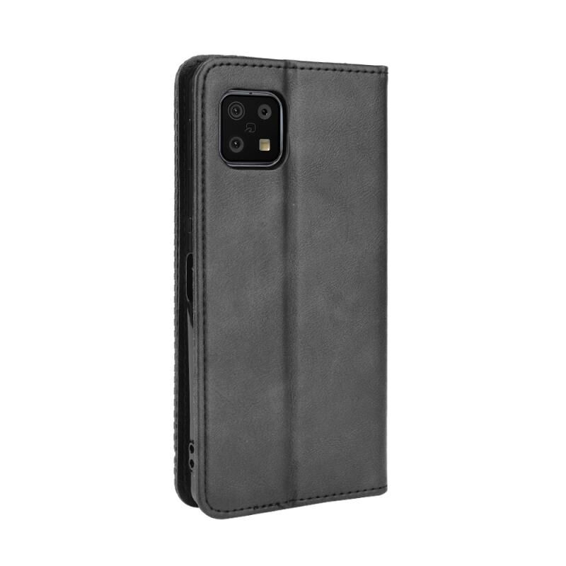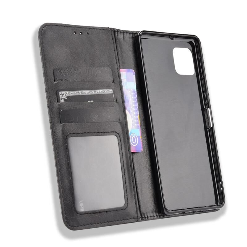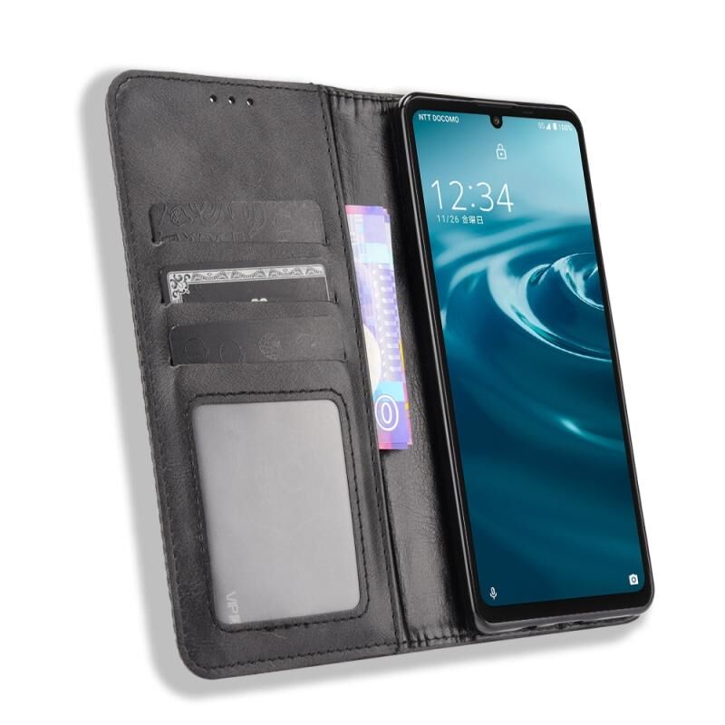 Για Aquos Sense6 Μαγνητική πόρπη Ρετρό τρελό άλογο υφή οριζόντια Flip δερμάτινη θήκη με κάτοχο & υποδοχές για κάρτες & πλαίσιο φωτογραφιών (μαύρο)