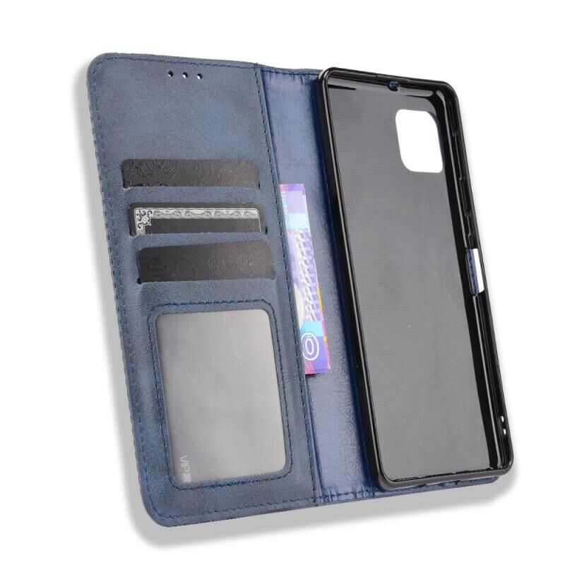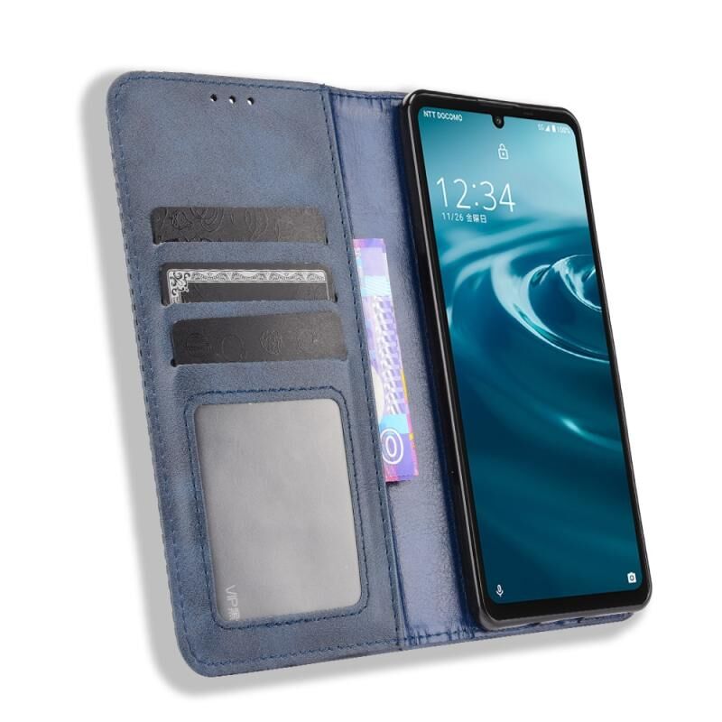 Για Aquos Sense6 Μαγνητική πόρπη Ρετρό τρελό άλογο υφή οριζόντια Flip δερμάτινη θήκη με κάτοχο & υποδοχές για κάρτες & πλαίσιο φωτογραφιών (μπλε)
