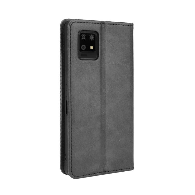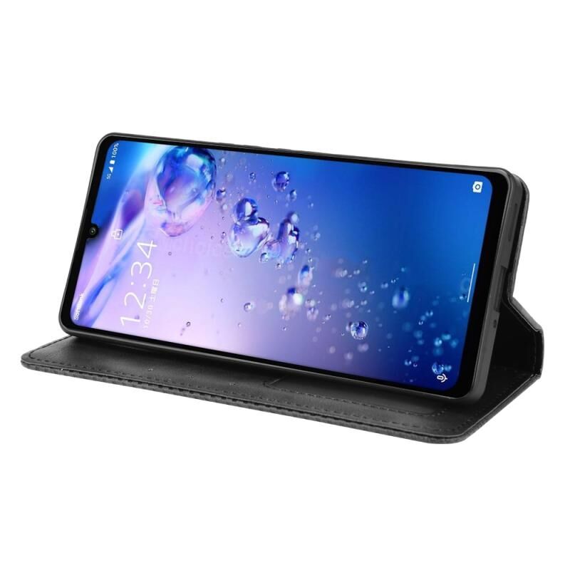 Για Aquos Zero6 Μαγνητική πόρπη Ρετρό τρελό άλογο υφή οριζόντια Flip δερμάτινη θήκη με κάτοχο & υποδοχές για κάρτες & πλαίσιο φωτογραφιών (μαύρο)