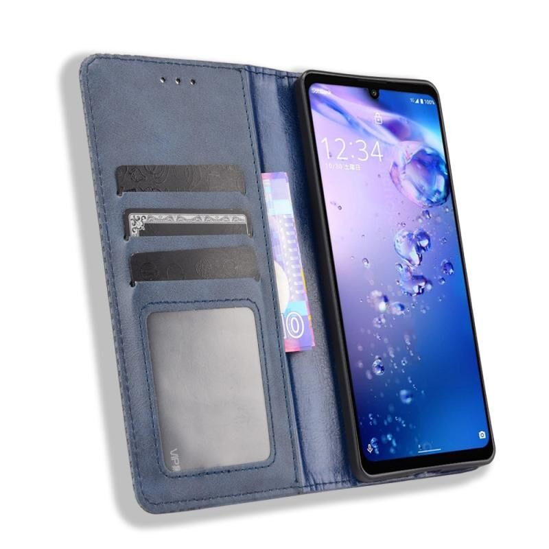 Για Aquos Zero6 Μαγνητική πόρπη Ρετρό τρελό άλογο υφή οριζόντια Flip δερμάτινη θήκη με κάτοχο & υποδοχές για κάρτες & πλαίσιο φωτογραφιών (μπλε)