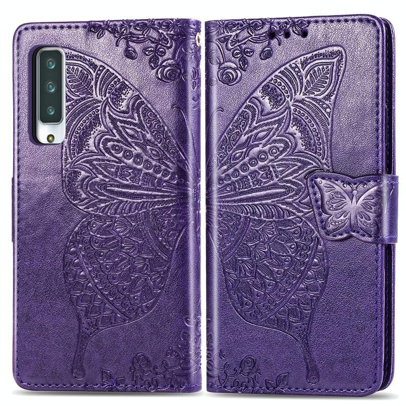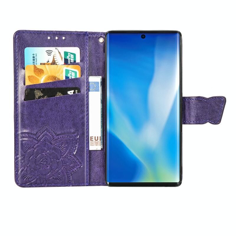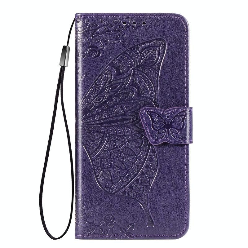 Για βέλη NX9 F-52A πεταλούδα αγάπη λουλούδι ανάγλυφο οριζόντια Flip δερμάτινη θήκη με βραχίονα / υποδοχή για κάρτες / πορτοφόλι / κορδόνι (σκούρο μωβ)