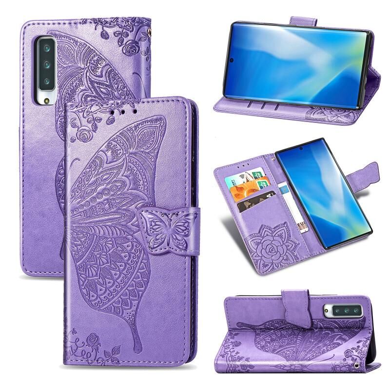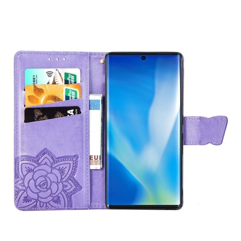 Για βέλη NX9 F-52A πεταλούδα αγάπη λουλούδι ανάγλυφο οριζόντια Flip δερμάτινη θήκη με βραχίονα / Υποδοχή κάρτας / πορτοφόλι / κορδόνι (Light Purple)