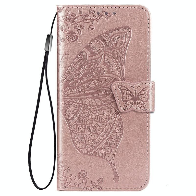 Για βέλη NX9 F-52A πεταλούδα αγάπη λουλούδι ανάγλυφο οριζόντια Flip δερμάτινη θήκη με βραχίονα / υποδοχή για κάρτες / πορτοφόλι / κορδόνι (Rose Gold)