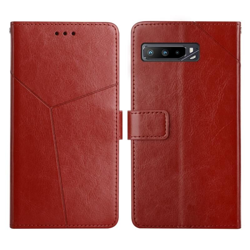 Για Asus ROG Phone 3 Y ραφή οριζόντια Flip υπόθεση τηλεφώνου δερμάτινη (καφέ)