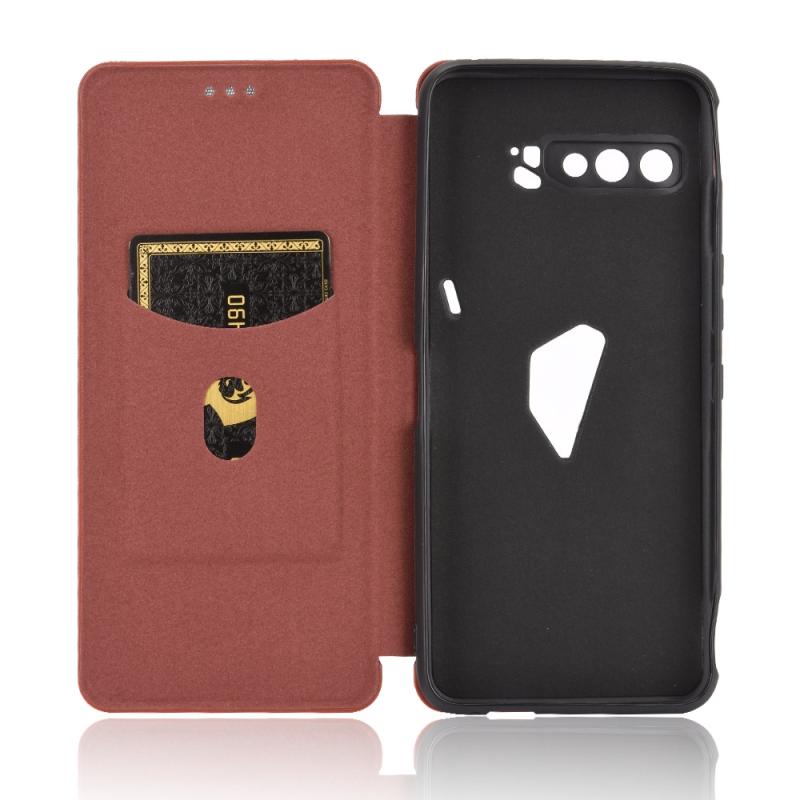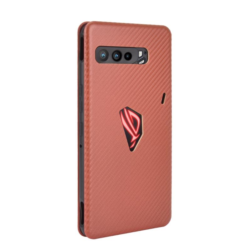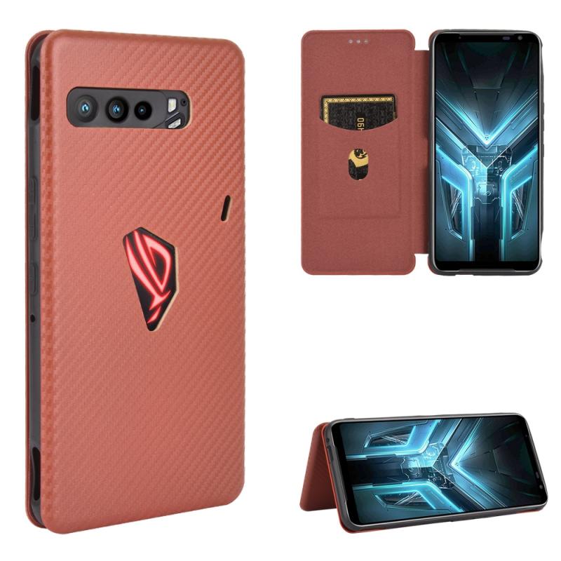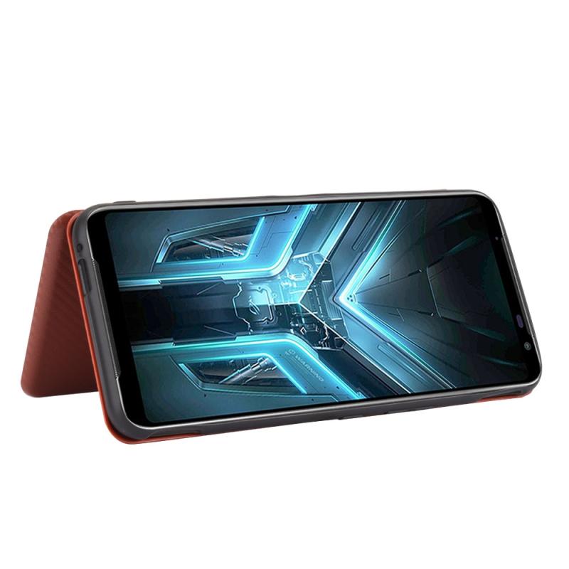 For Asus ROG Phone 3 ZS661KS Carbon Fiber Texture Horizontal Flip TPU + PC + PU Leather Case with Card Slot(Brown)