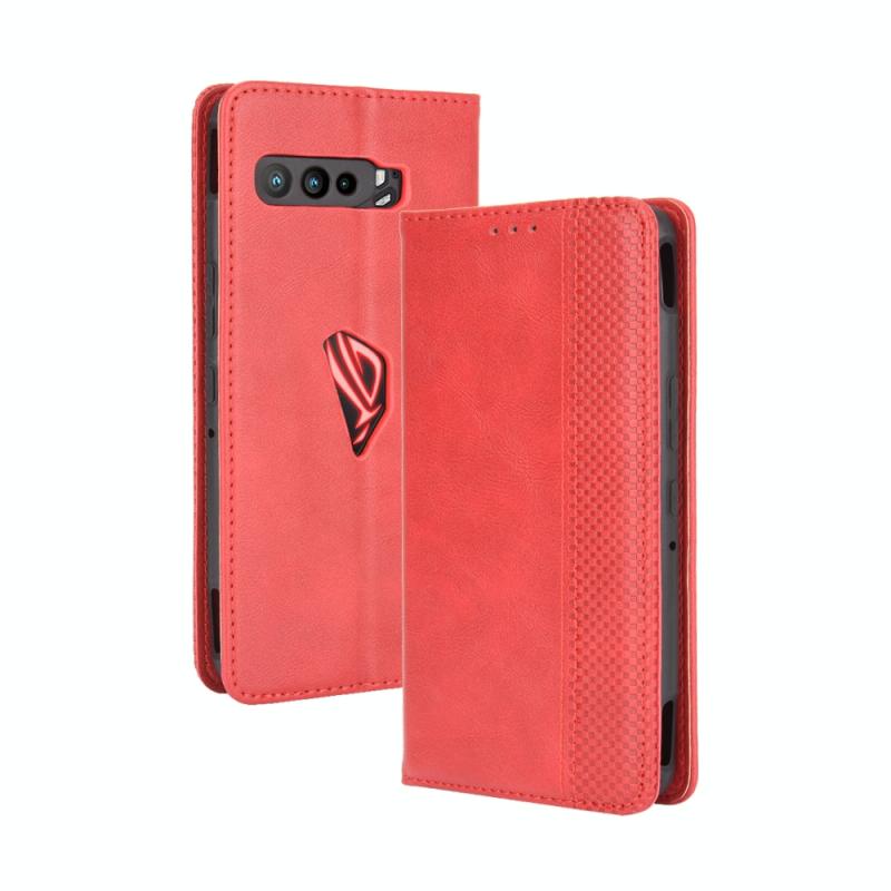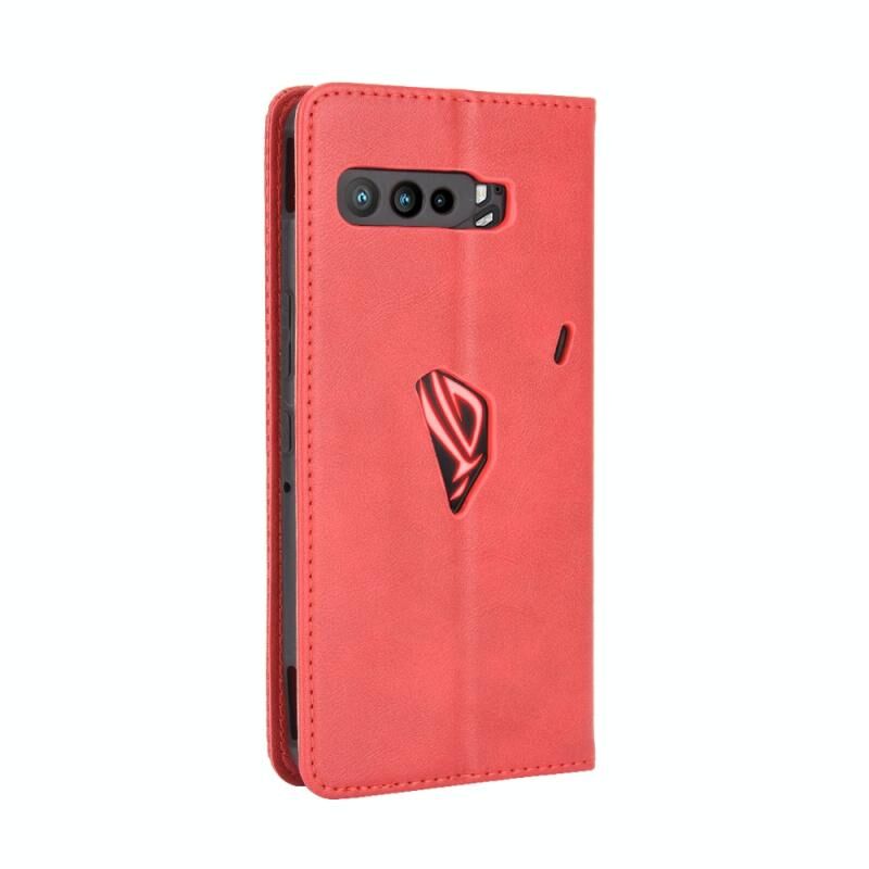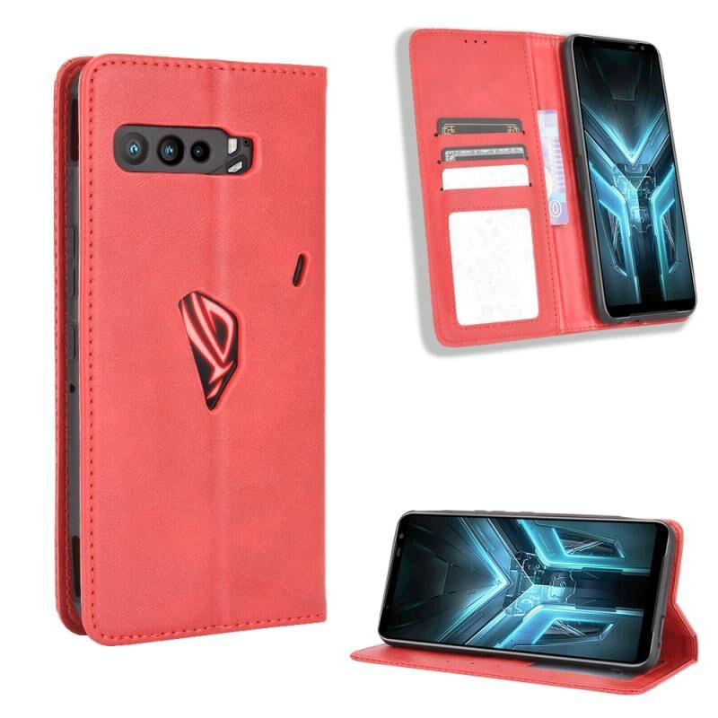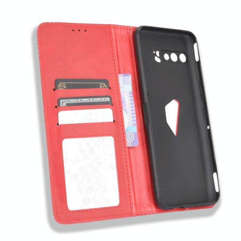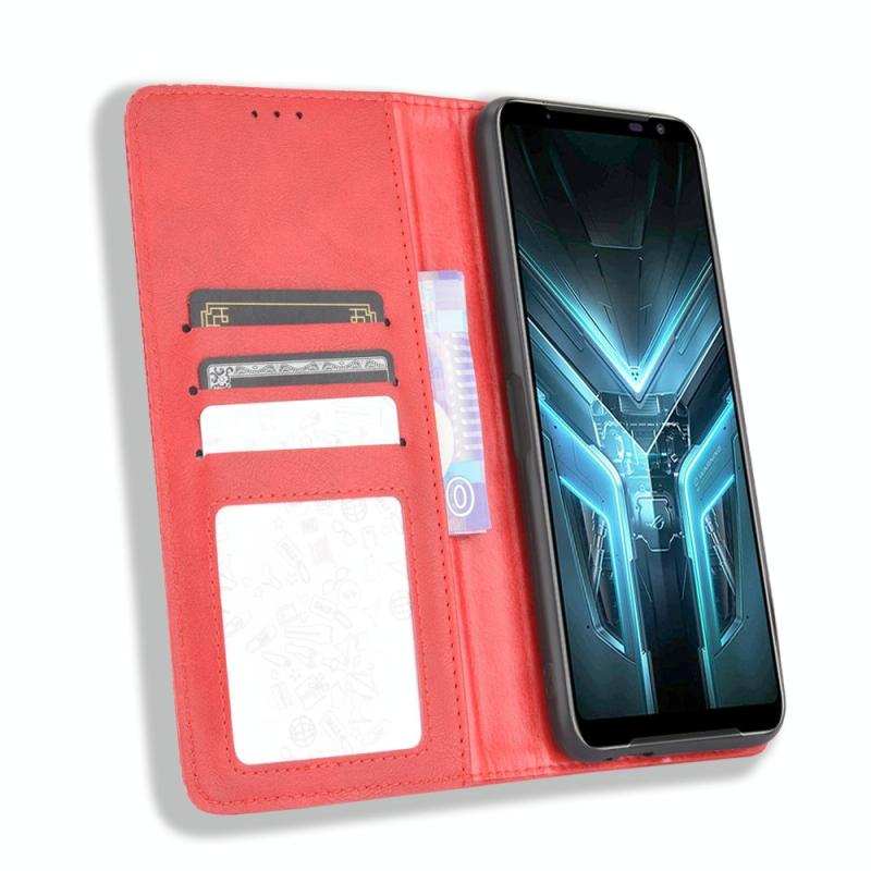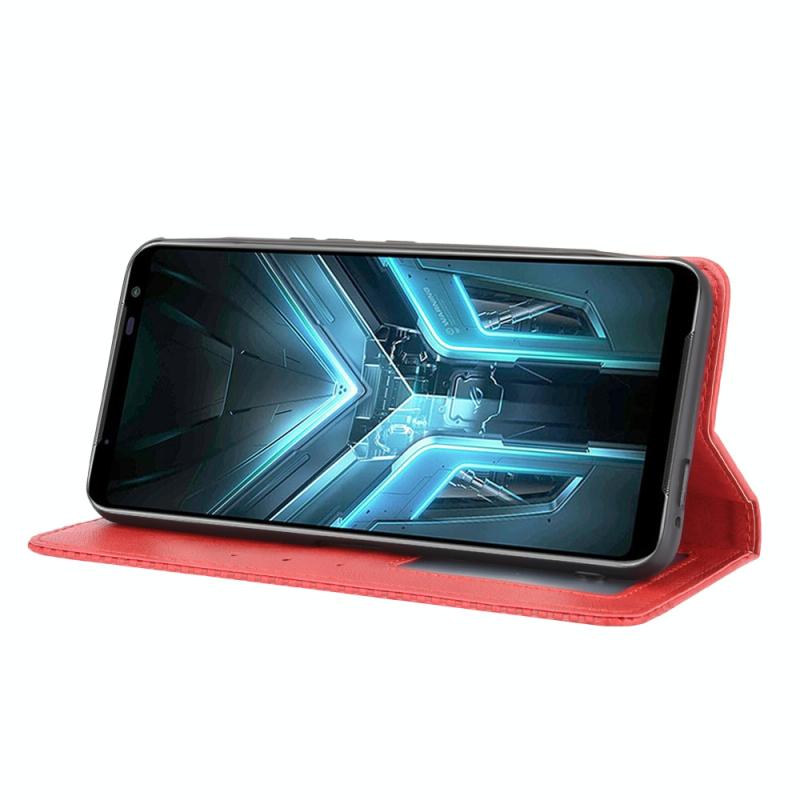 For Asus ROG Phone 3 ZS661KS Magnetic Buckle Retro Crazy Horse Texture Horizontal Flip Leather Case , with Holder & Card Slots & Photo Frame(Red)