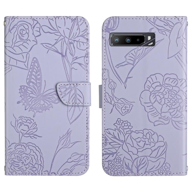 Θήκη τηλεφώνου από δέρμα με ανάγλυφο σχέδιο πεταλούδας και παιώνιας για Asus ROG Phone 3 ZS661KS (Κόκκινο)