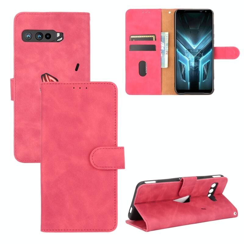 Για ASUS ROG τηλέφωνο 3 ZS661KS Αμιγές χρώμα δέρμα αίσθηση μαγνητική πόρπη οριζόντια Flip μοσχάρι υφή PU δέρμα υπόθεση με κάτοχο & υποδοχές για κάρτες & πορτοφόλι (Rose Red)
