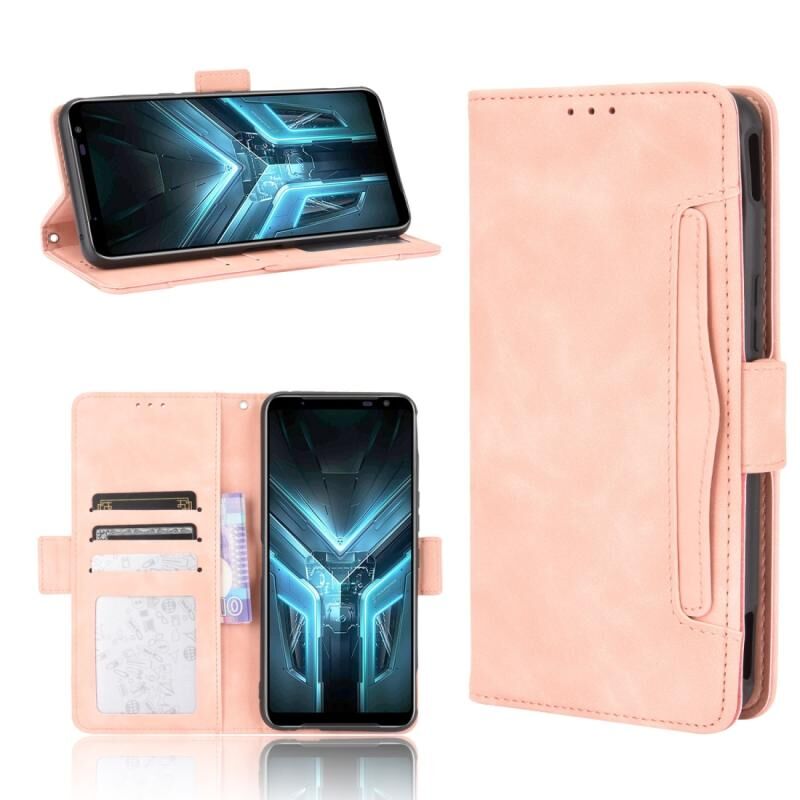 For Asus ROG Phone 3 ZS661KS Wallet Style Skin Feel Calf Pattern Leather Case ,with Separate Card Slot(Pink)