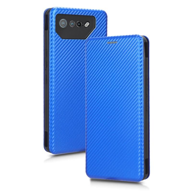 Για ASUS ROG Phone 7 Carbon Fiber Texture Flip δέρμα τηλέφωνο υπόθεση (μπλε)