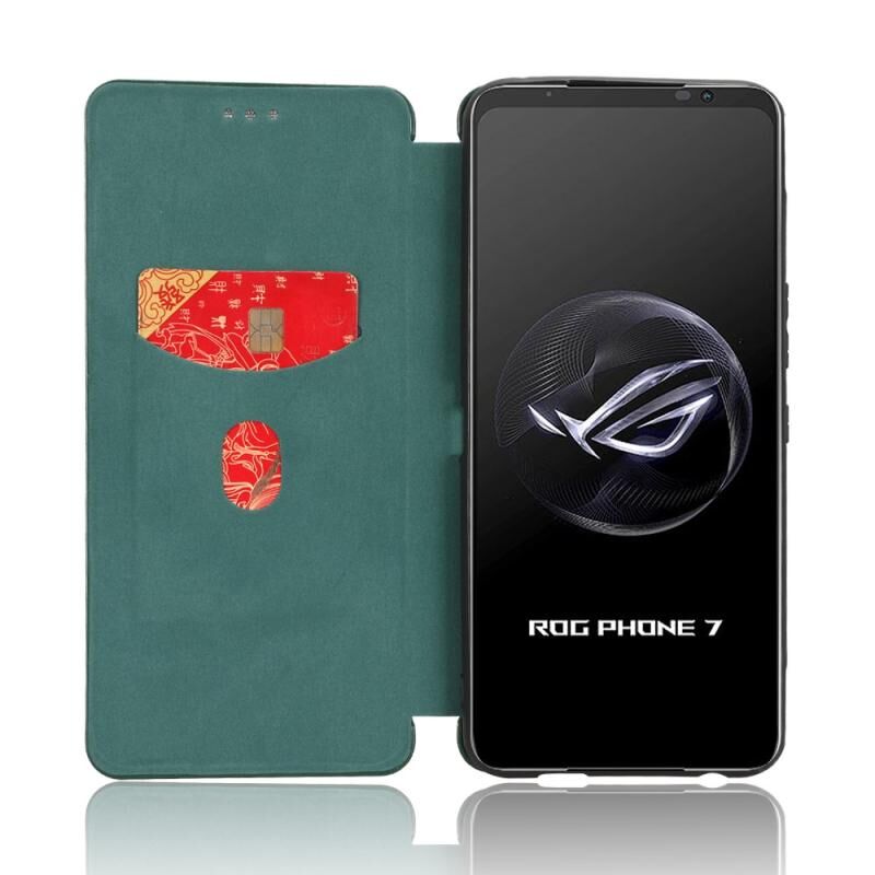 Για ASUS ROG Phone 7 Carbon Fiber Texture Flip δέρμα τηλέφωνο υπόθεση (πράσινο)