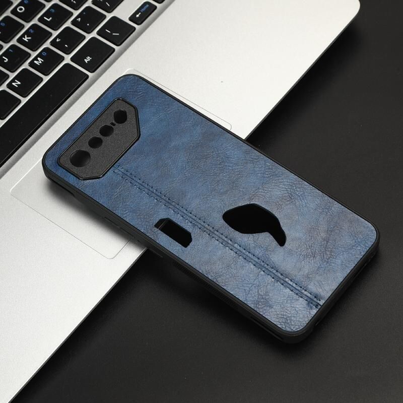 Για Asus ROG τηλέφωνο 7 Αγελάδα μοτίβο ραπτικής δέρματος PC + PU + TPU τηλέφωνο υπόθεση (μπλε)