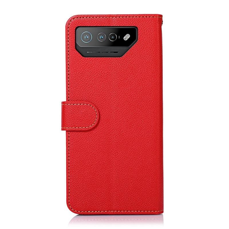 Θήκη κινητού τηλεφώνου Asus ROG Phone 7 KHAZNEH με δερμάτινη υφή Litchi και προστασία RFID (Μπλε)