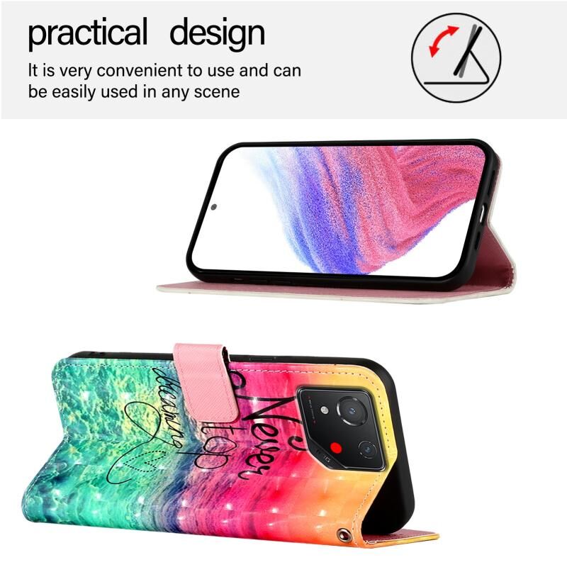 Θήκη τηλεφώνου από δέρμα με οριζόντιο άνοιγμα και τρισδιάστατη ζωγραφική για Asus ROG Phone 8 (Κυνηγώντας Όνειρα)